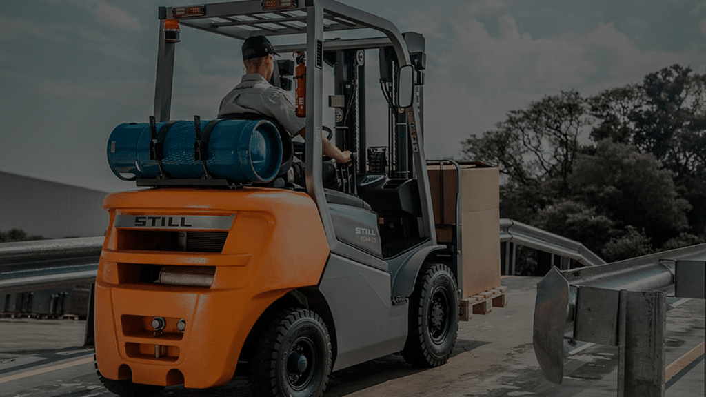 - Escala humana opcional: incluir um operador ao lado da máquina pode reforçar o porte do equipamento, quando fizer sentido.